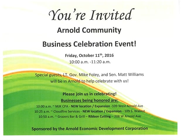 Celebration is in order and your attendance is requested at a ribbon cutting ceremony for three of Arnold's businesses!