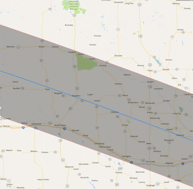 Arnold, Nebraska, sits in the center of a narrow band only 70 miles wide that stretches from Oregon to South Carolina in which viewers will be able to see the 2017 Great American Total Solar Eclipse in totality.